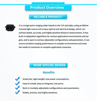 | la exactitud | ±6cm@ (0,2m-3m) ; ±2%@ (3m-8m) | Fuente de alimentación | 3.7V a 5.2V |