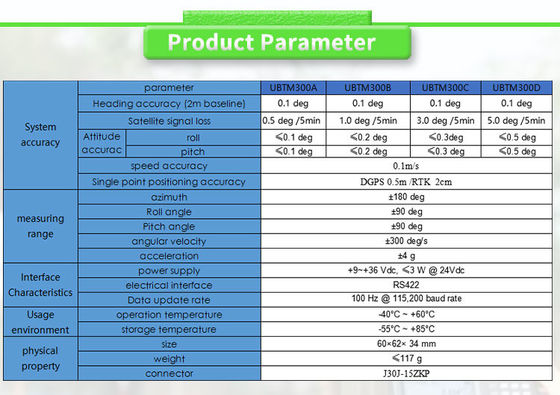 Fibra óptica de alta precisión MEMS giroscopio de salida de la forma RS422 tasa de baud 115200 para UBTM300Y
